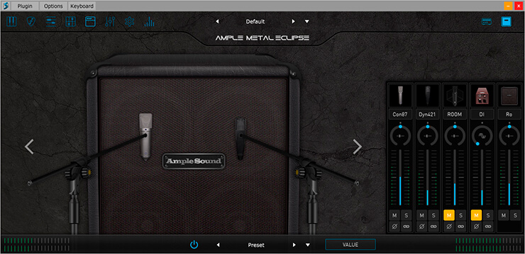 Tal como nos outros 2 plugins desta série, a Ample Metal Hellrazer permite alterar o carácter do som no plugin com base na variedade de amplificadores e emulação de cabinets.