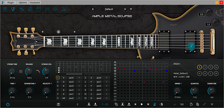 A Ample Metal Eclipse soa surpreendentemente realista e expressiva. Definitivamente não é um som de guitarra habitual em outros plugins do mesmo tipo. O mais impressionante é que mesmo para aqueles que não conseguem realmente tocar bem, o som é extraordinário e a performance muito real.