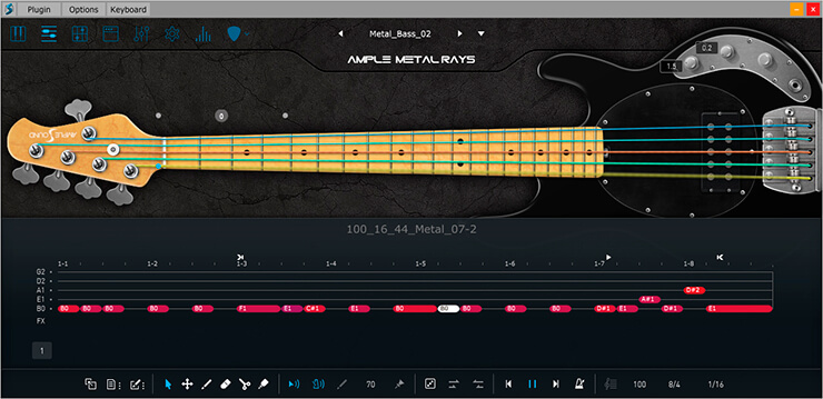 Como todos os outros plugins da Ample Sound Metal Series, o Ample Metal Ray5 integra ainda as excelentes funcionalidades do Riffer 2, FX e Tab Player (veja mais abaixo por favor o que são estas opções).